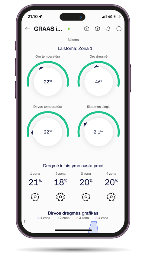 Rinkitės iš skirtingų GRAAS iRigator komplektacijų. Eco ir Dynamic versijos leis augalus laistyti nustatytu laiku ir pasirinktu kiekiu vandens. Eco Pro ir Dynamic Pro versijos įgalina autonominį laistymą pagal dirvožemio drėgmę ir užtikrina, kad augalai visuomet turėtų reikiamą kiekį vandens.
